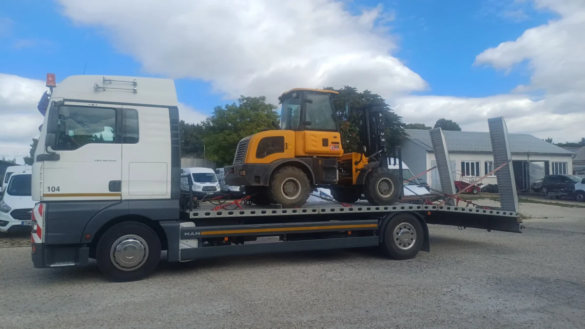 Az ország bármely területén szállítatná nehézgépeit, rendelkezünk a megfelelő nyerges vontatókkal a biztonságos szállításhoz. Figyelembe vesszük a gép típusát, súlyát, magasságát, alakját és még sok mást, hogy a rakományt a lehető legbiztonságosabban szállítsuk. 10T hidroplatós teherautóval végezzük a gépszállítást, amelynek előnye, hogy még egy háromkerekű targoncát is könnyen fel tudunk vele venni!